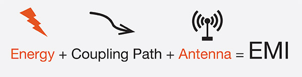 Sometimes called radio frequency interference (RFI), electromagnetic interference (EMI) occurs when electromagnetic energy disrupts the operation of an electronic device. The source of EMI can be man-made, such as other electrical devices like switch-mode power supplies, personal computers, or naturally occurring, such as electrical storms, solar radiation, or even cosmic noises.