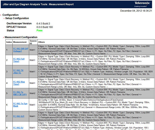- Detailed Test Reports – Tektronix FC-16G solution provides Printable reports results, margin and statistical data enhances analysis capabilities and allows for results sharing