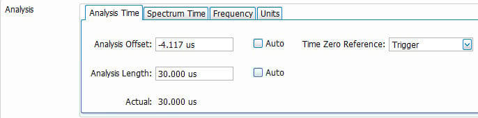 The Analysis Offset and Length can also be setup in the Setup > Analysis panel (although it is less visually intuitive).
