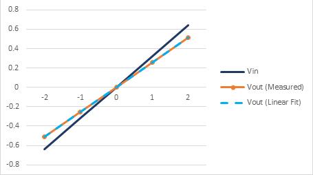 | Vout (linear fit) slope | Vin slope | Measured gain |