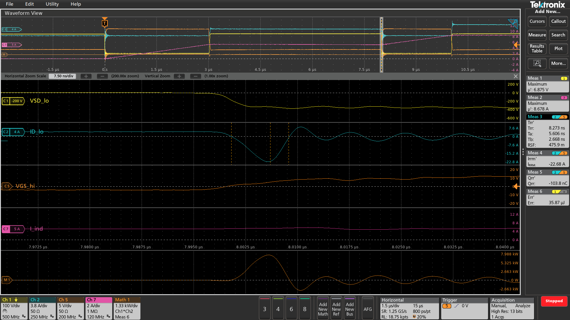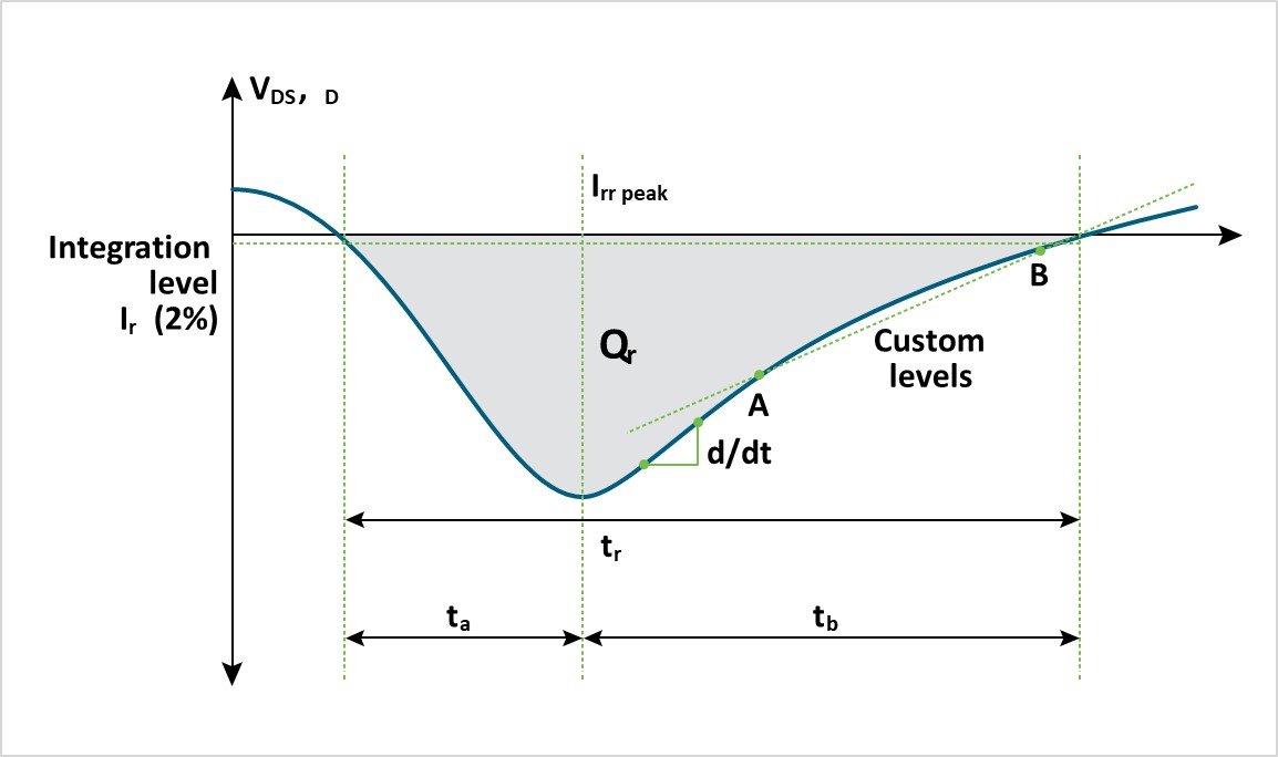 The following measurements, found in the WBG-DPT application in the Diode Reverse Recovery group, were set up for this test: