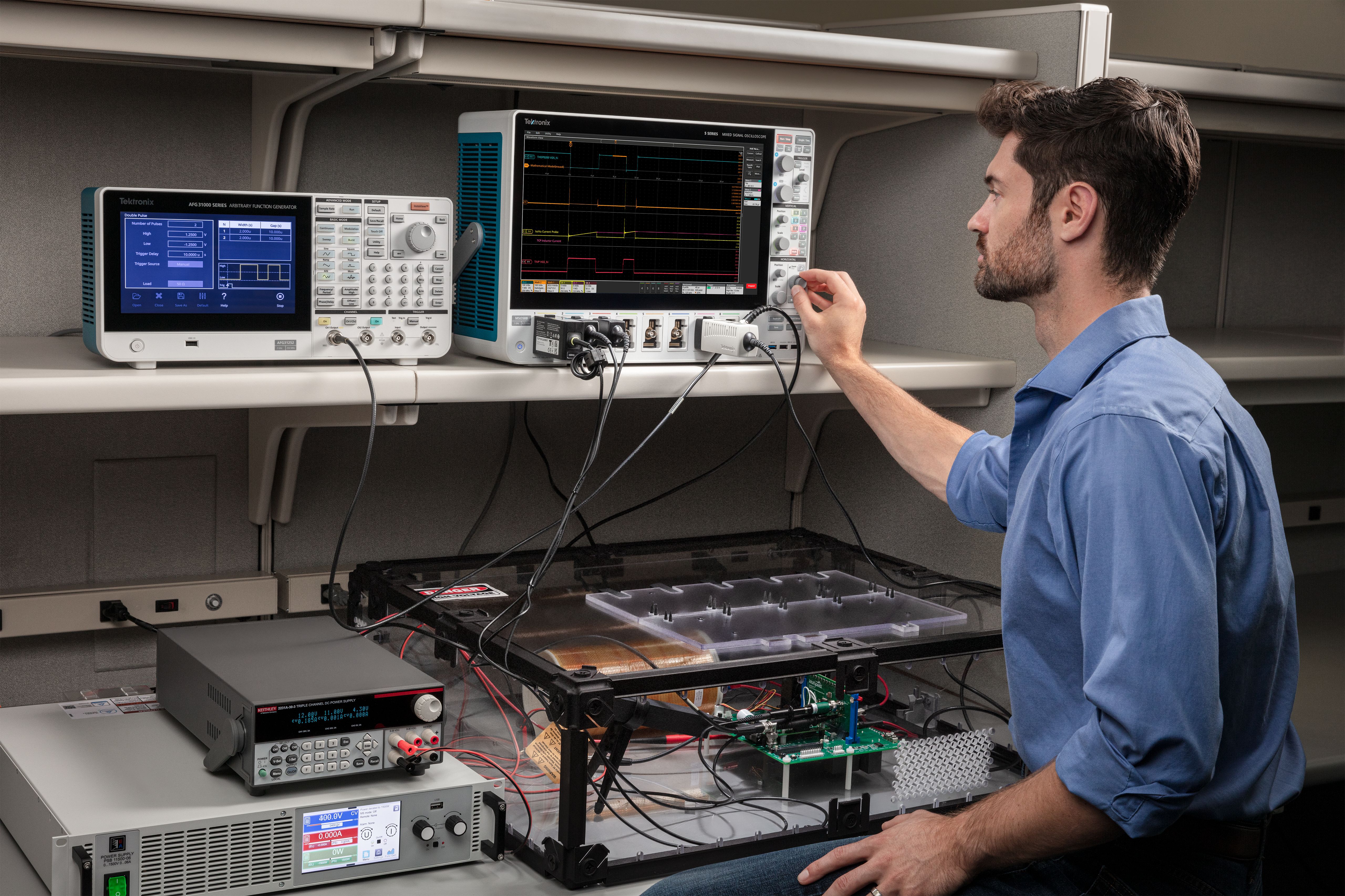 - Tektronix AFG31252 arbitrary/function generator with Double Pulse Testing Application