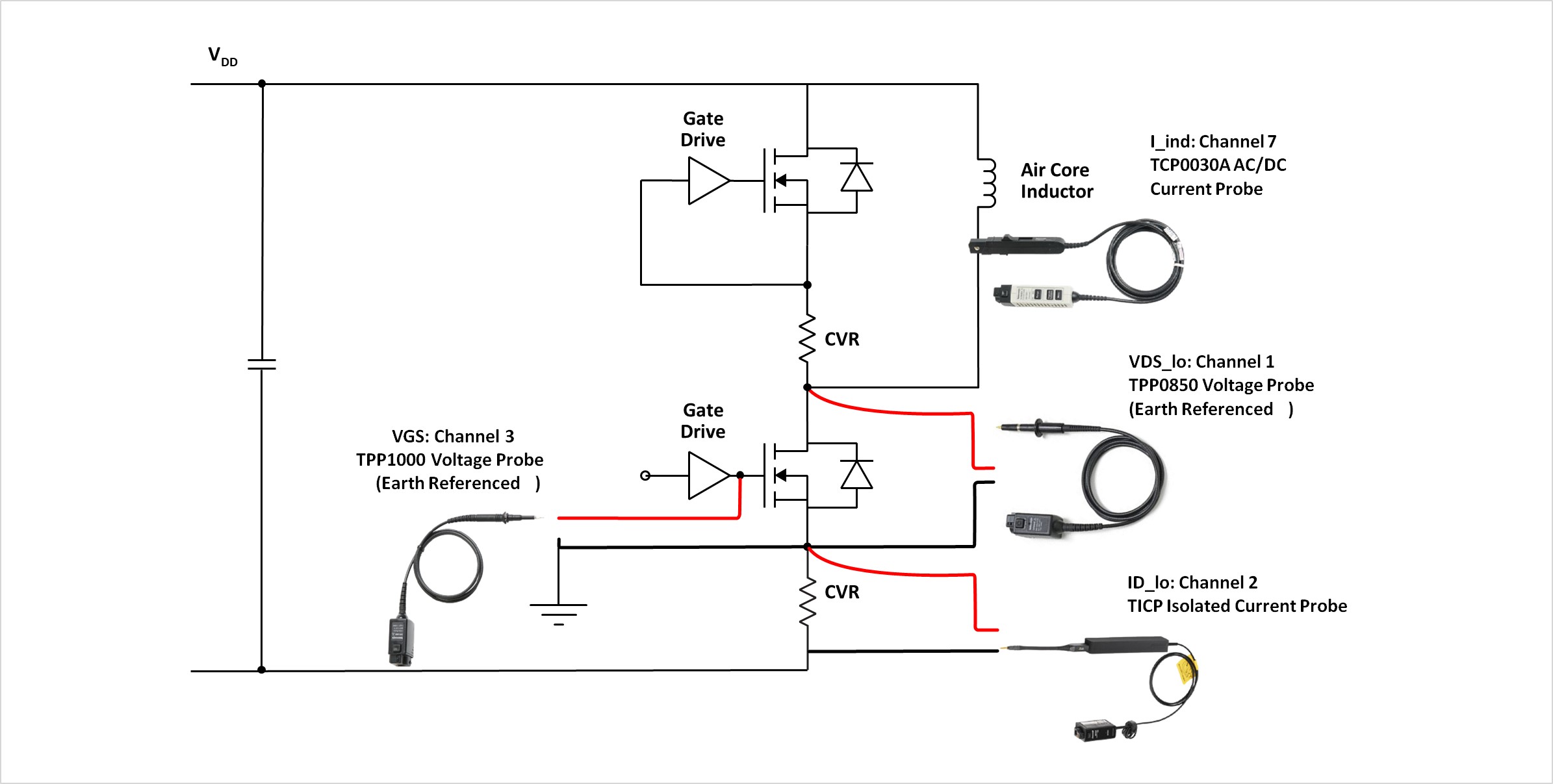 For low-side device switching testing shown in Figure 18, these probes represent a good starting configuration for most applications.