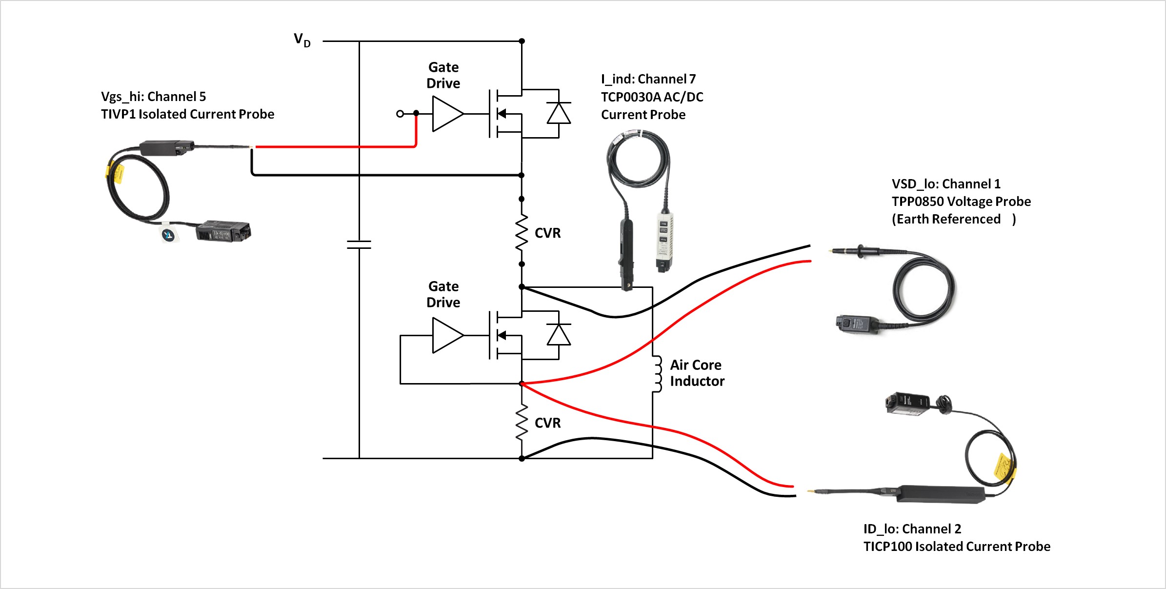 - ID-Lo - TICP Series IsoVu Isolated Current Probe is recommended along with a high-performance shunt resistor or CVR. A clamp on current probe such as a TCP Series may also be used if access is available.