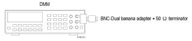 - Connect the 50 Ω terminator to the DMM as shown in the following figure and measure the resistance value.