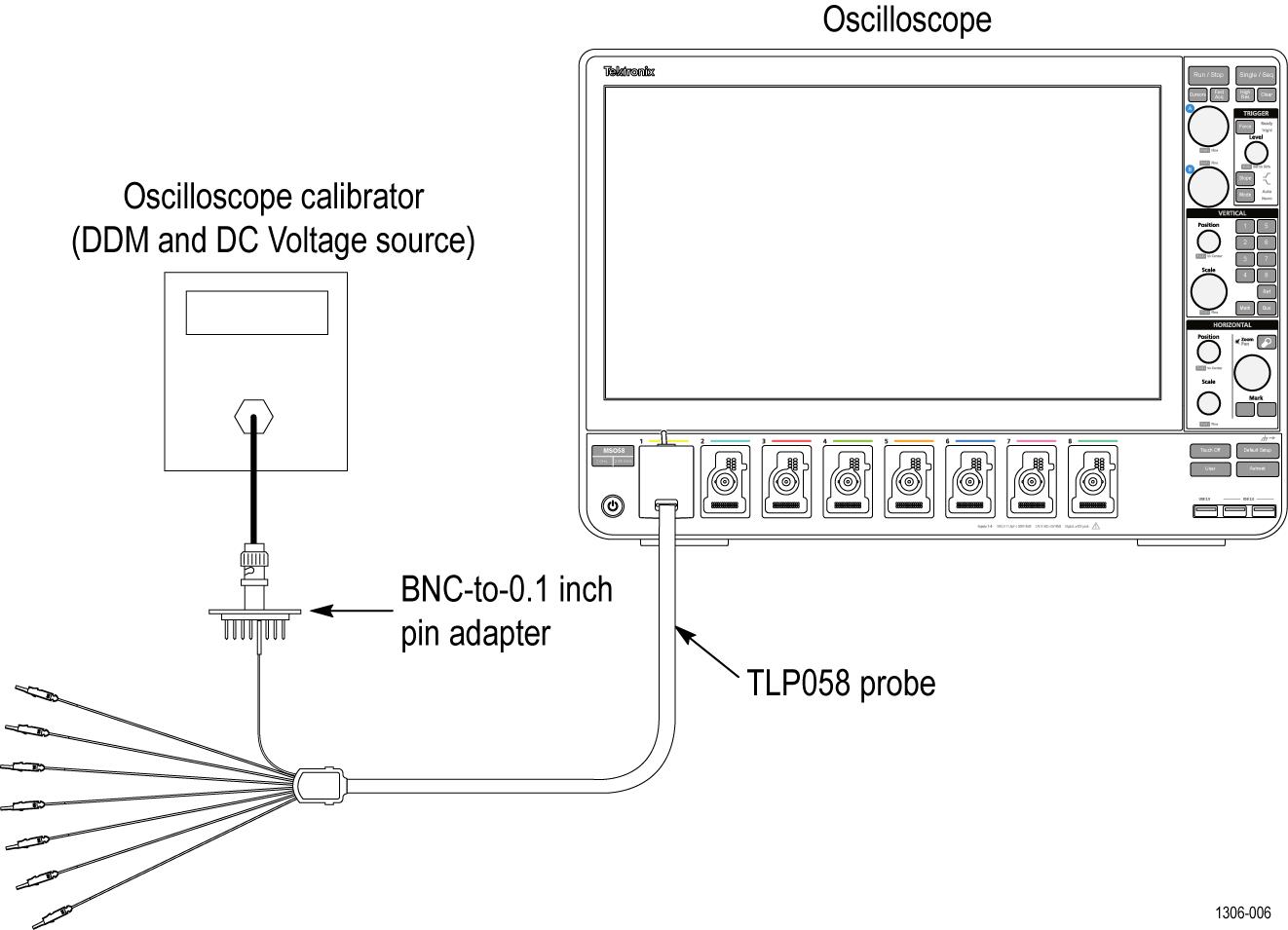 Connect the TLP058 digital probe to channel 1.