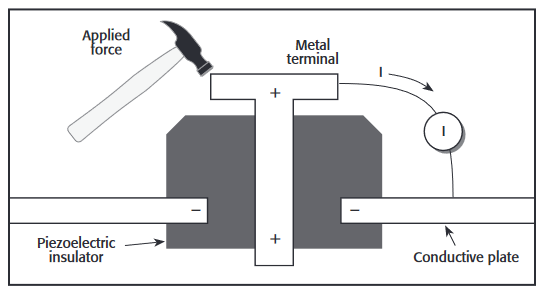 Piezoelectric currents are generated when mechanical stress is applied to certain crystalline materials when used for insulated terminals and interconnecting hardware. In some plastics,pockets of stored charge cause the material to behave in a manner similar to piezoelectric materials. An example of a terminal with a piezoelectric insulator is shown in Figure 16.