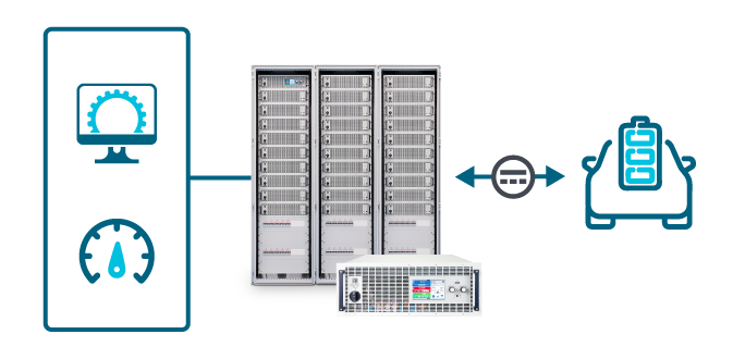 Bidirectional power supplies can be made into modular rack systems for testing battery systems up to 3.84MW.