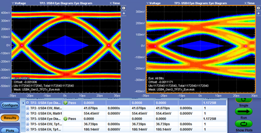 Image 1: USB4 Gen3 (20Gbps) TP2 and TP3 Eye Diagrams