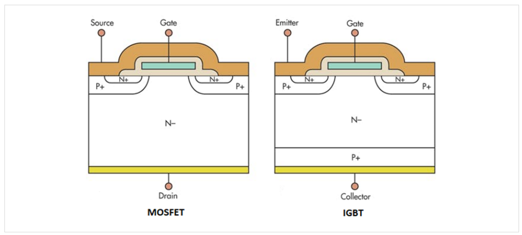 Figure 1: A comparison of the structure of a Power MOSFET and an IGBT