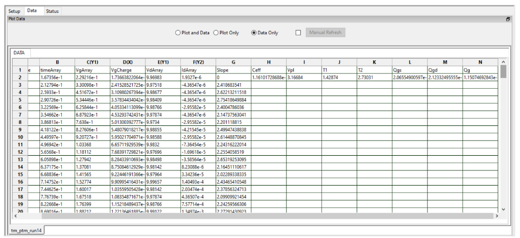 After the test is completed, several parameters are output to the Data Tab. Table 2 lists the descriptions of these parameters. Figures 7 and 8 show the contents of the Data Tab and the Plot after the test is executed.
