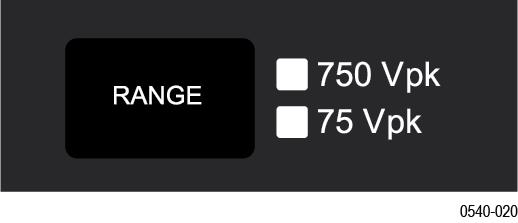 - Press and hold the probe BANDWIDTH LIMIT and RANGE buttons until the OVERRANGE LED on the probe flashes.