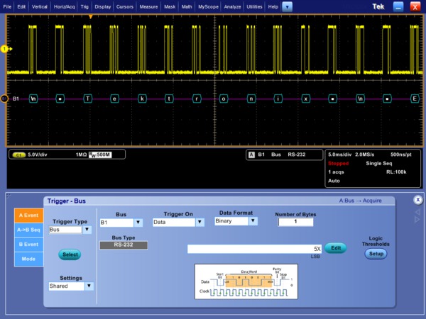 Opt. SR-COMP hinzufügen – Serielle Triggerung und Analyse für Computertechnik (RS-232/422/485/UART)