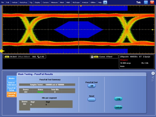 Jedes Oszilloskop der DPO7000C-Serie wird mit dem Softwarepaket „DPOJET Essentials“ für Jitter- und Augendiagrammanalyse ausgeliefert, das die Messfunktionen des Oszilloskops erweitert und Messungen über benachbarte Takt- und Datenzyklen in einer Einzelschuss-Echtzeit-Erfassung ermöglicht. Auf diese Weise ist es möglich, wichtige Jitter- und Timing-Analyseparameter wie Zeitintervallfehler (Time Interval Error, TIE) und Phasenrauschen zu messen und eventuelle System-Timing-Probleme zu charakterisieren. Analysewerkzeuge wie Darstellungen von Zeittrends und Histogramme machen deutlich, wie sich Timing-Parameter im Laufe der Zeit verändern. Die Spektrumsanalyse zeigt schnell die genaue Frequenz und Amplitude von Jitter- und Modulationsquellen auf.