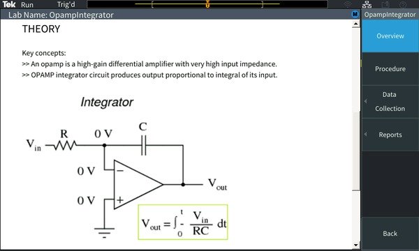 Über die integrierte Kursunterlagen-Funktion können Dozenten Laborübungen in das Gerät laden, sodass den Lehrgangsteilnehmern an jeder Station eine Anleitung zur Verfügung steht. Darüber hinaus bietet diese Funktion einen strukturierten Rahmen, innerhalb dessen Lehrgangsteilnehmer Daten erfassen können, die in ihre Berichte eingebunden werden sollen. ImTektronix Courseware Resource Centerstehen über 100 beispielhafte Laborübungen zum Download zur Verfügung.