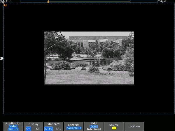 Die Videofunktionen lassen sich mit einem optionalen Videoanwendungsmodul zusätzlich erweitern, das die branchenweit umfassendste Auswahl an HDTV und anwenderdefinierten (nicht standardmäßigen) Video-Triggern sowie einen Videobild-Modus bietet, der es Ihnen ermöglicht, das Bild des angezeigten Videosignals zu sehen – für NTSC- und PAL-Signale. Die optionale Video-Analysefunktion ist während eine Testzeitraums von 30 Tagen kostenlos nutzbar. Dieser automatische Testzeitraum beginnt automatisch ersten Einschalten des Gerätes.