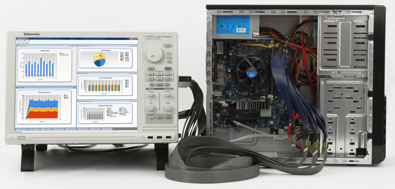 For debugging the signal integrity problems common on high-speed DDR buses, the P6900 specialty probes for DDR applications work with the TLA7Bxx modules to provide iCapture™ simultaneous digital-analog acquisition. This allows you to clearly see the time-correlated digital and analog behavior of your design, without the extra capacitance and setup time of double probing.