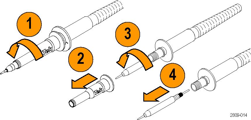 ![]() | Insulator sleeve: Remove this sleeve to replace the probe tips. |
