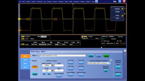 This short video demonstrates the ability to use MATLAB files in the math function of the oscilloscope. Then using Application Development kit (ADK) to control the Low pass or High pass filter frequencies of the MATLAB file.