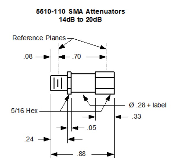 | Length & Weight | 19.2 mm, 4.1 gm (1-12 dB) 22.5 mm, 4.9 gm (14 & 20 dB), 5/16" hex body |