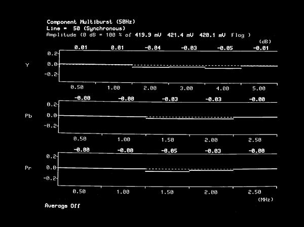 Option 30 provides a full complement of component analog video measurements and displays. All measurements provide numerical results which are available through the remote control interface. Like other VM700T video measurements, Option 30 measurements provide the relative to reference mode for factoring out connection anomalies and improved accuracy. The VM700T can be easily configured for Y/R-Y/B-Y or GBR formats.