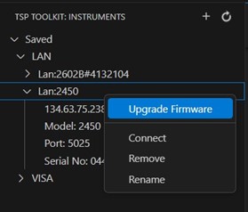 Figure 2: TSP Toolkit instrument pane context menu options.
