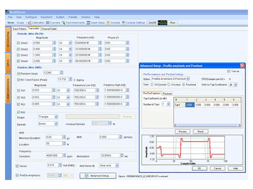 High speed serial data signals are becoming more and more complex. SerialXpress® together with the AWG simplifies the signal creation and jitter simulations to reduce overall development and test time. The software enables the creation of the EXACT waveforms required for thorough and repeatable design validation, margin/characterization and conformance testing. SerialXpress' easy to use graphical user interface allows for a combination of test signals and various impairments including Inter Symbol Interferences (ISI), Duty Cycle Distortion (DCD), Spread Spectrum Clocking (SSC), Pre-emphasis and noise.