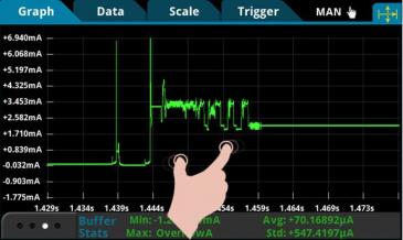 Visualize and study every waveform using the graphical touchscreen display. And for even more in-depth analysis, pinch and zoom to easily expand and magnify your view.