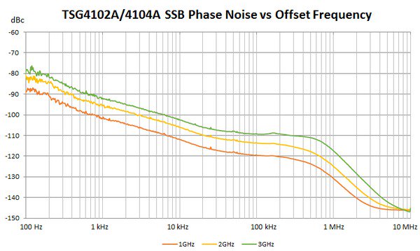 Les instruments de la série TSG4100A utilisent une base de temps d'oscillateur à quartz thermostaté SC-cut (modèles TSG410xA-M00 ou E1), qui multiplie par cent la stabilité (et divise par cent le bruit de phase interne) par rapport aux instruments qui utilisent une base de temps TCXO.