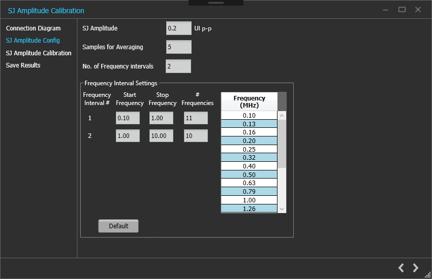 SJ@210 MHz calibration for Gen6. - Multi-tone SJ – For JTOL measurements where up to maximum 14 frequencies are used, calibration for frequencies other than 100 MHz is required to be performed.