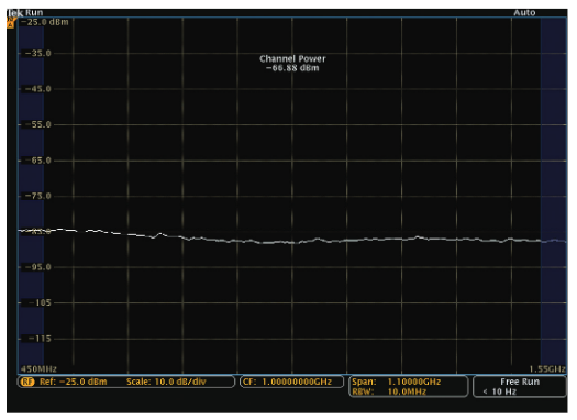 Figure 11. Noise power and trace of 1 GHz channel at 10 MHz RBW.
