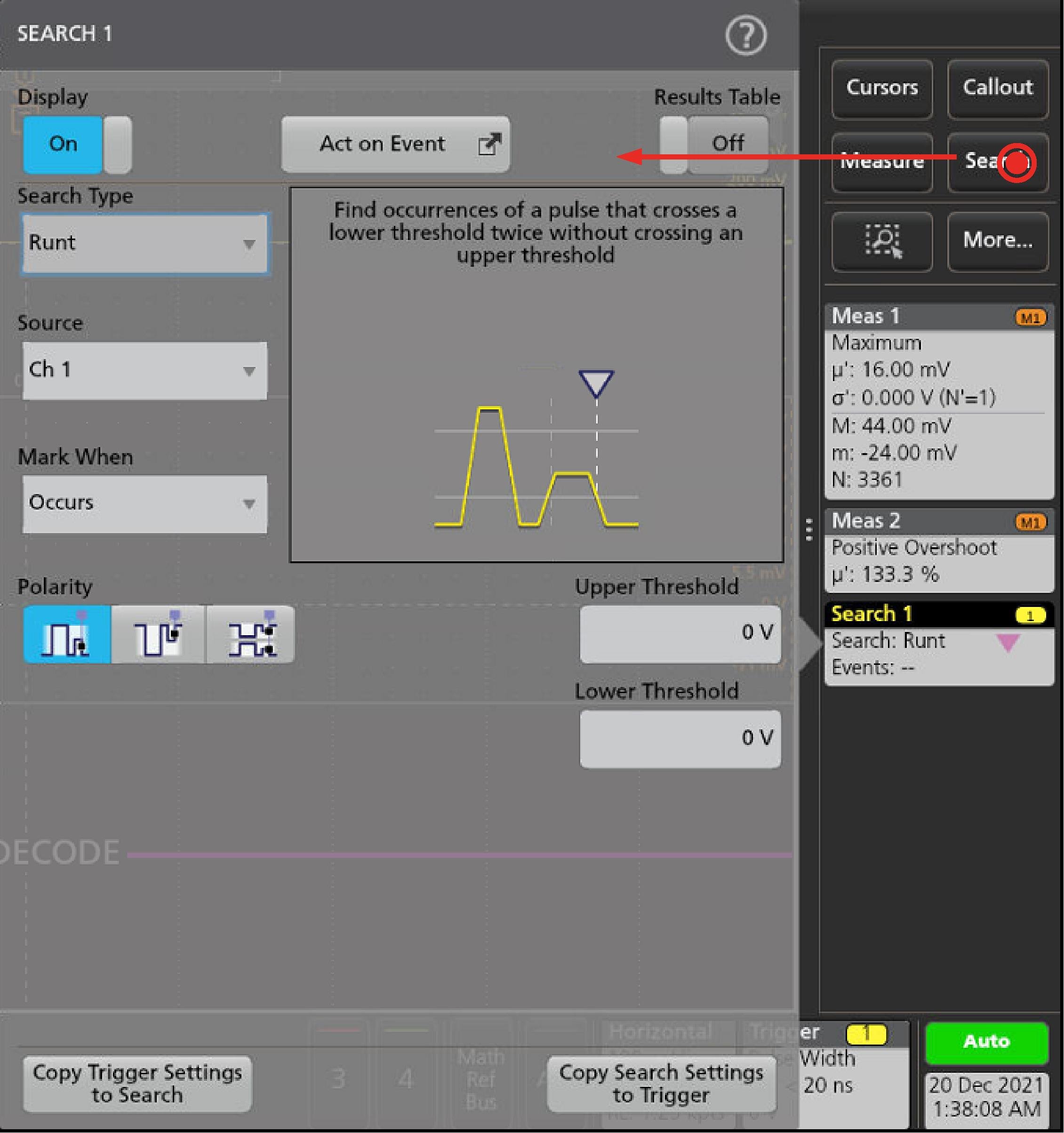 Observez la procédure suivante pour définir les critères de recherche et marquer un signal lorsqu’un événement se produit.