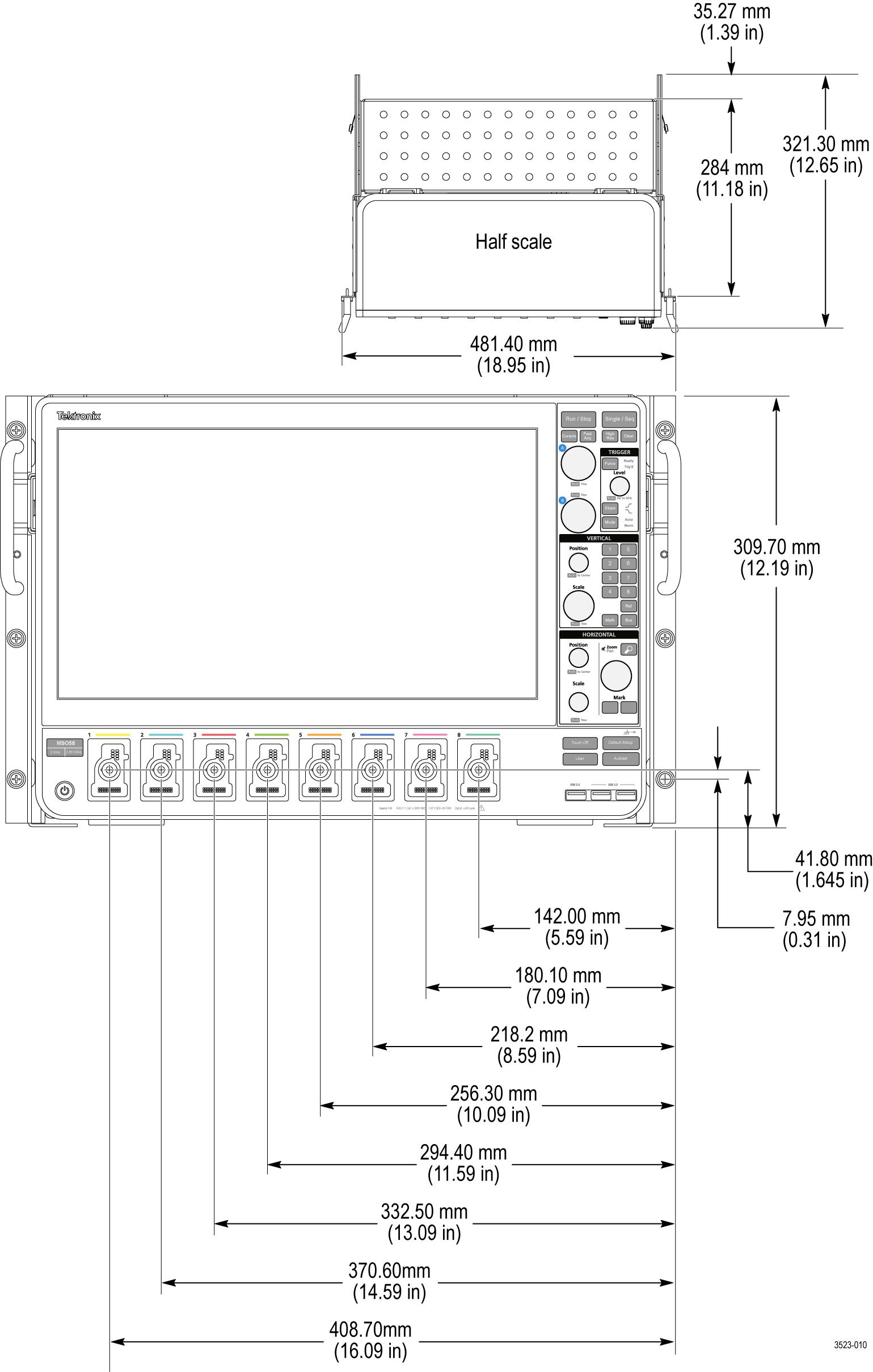 - A minimum width of 488 mm (19.2 in) between the left- and right-front rails in the rack. If possible, consider allowing at least 50.8 mm (2.0 in) on the right side and rear of the instrument for adequate airflow.