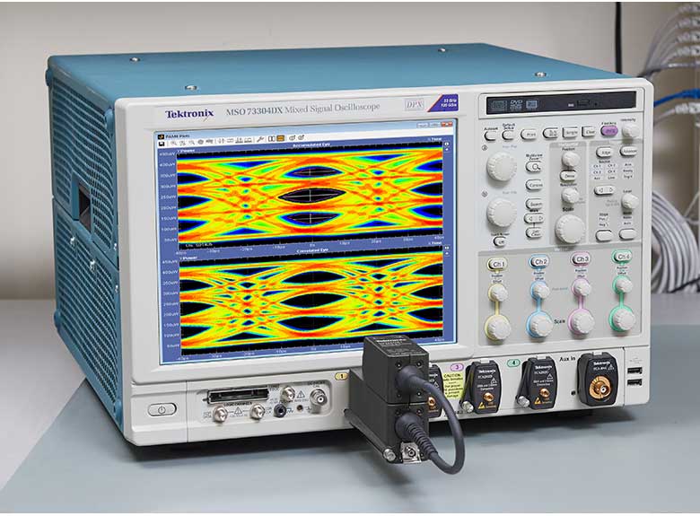 The DPO7OE series optical probes with a DPO70000 real-time scope deliver the performance and advanced debug capabilities designers need to fully troubleshoot 400G PAM4 signals, up to 56 GBaud, and reduce time to market.