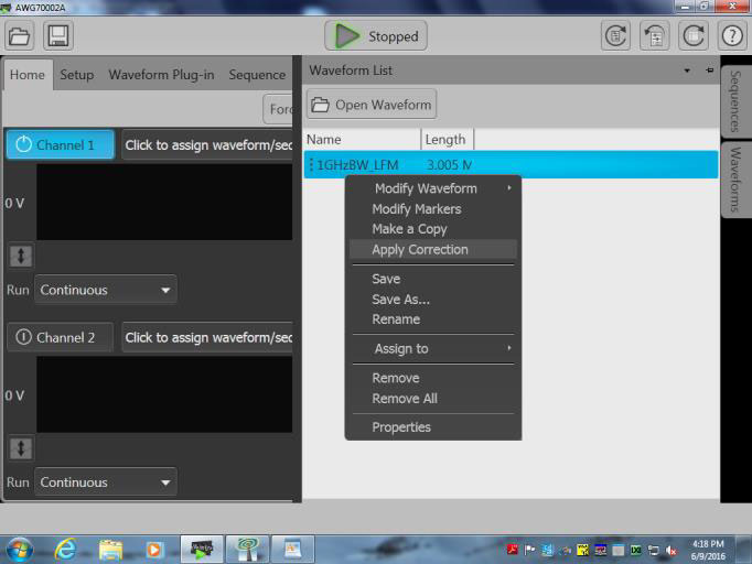 The next step is to apply the corrections to the waveform. In the Waveform List, right-click on the waveform that you want to correct, and select the “Apply Correction” item in the pop-up menu: