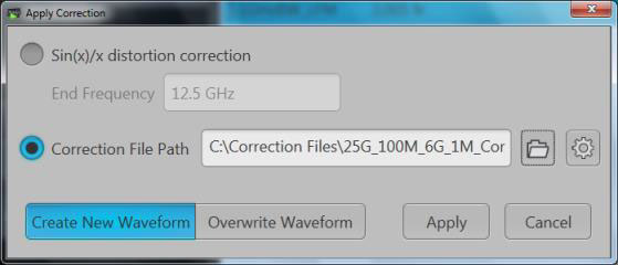 Select the “Correction File Path” radio button, and use the folder icon to navigate to the correction filter file you just created. Select the “Create New Waveform” button, and hit Apply to create a pre-compensated version of your original waveform.