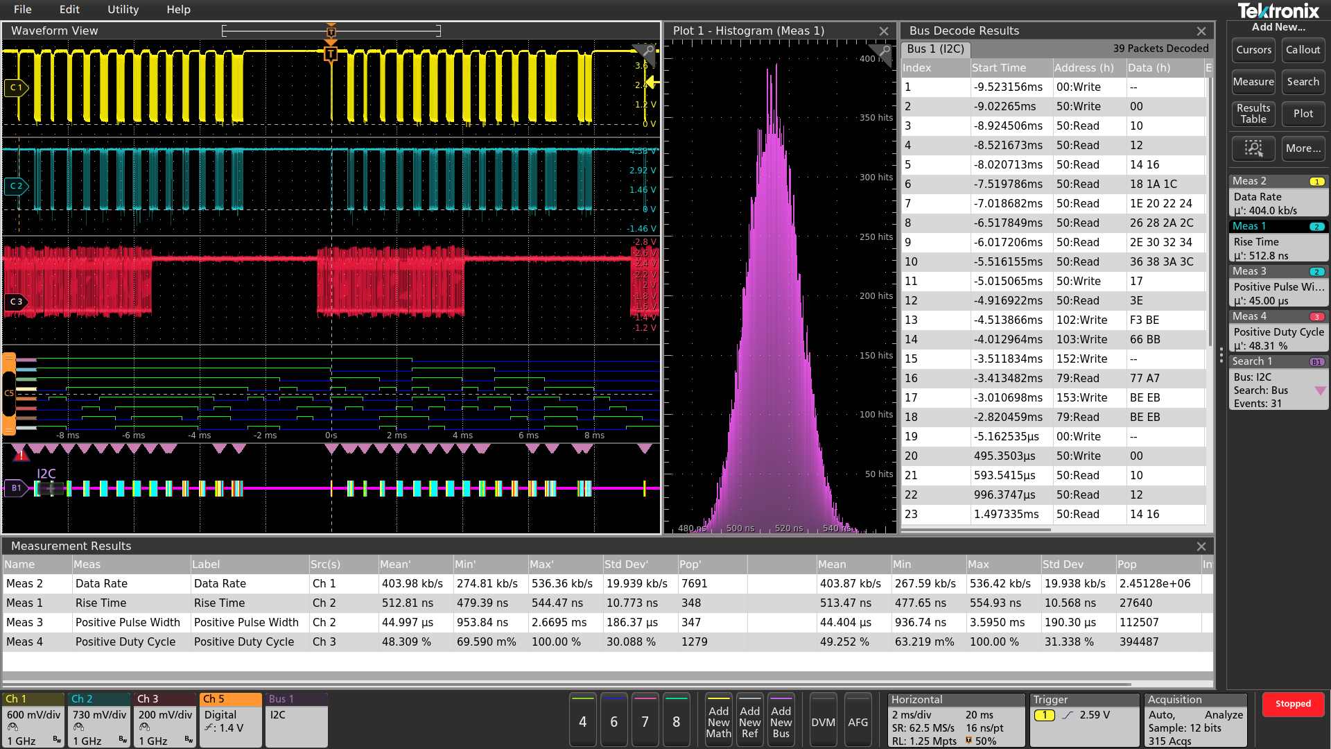 ディスプレイを備えており、広い表示領域を確保できるため、信号だけでなく、プロット、測定結果テーブル、バス・デコード・テーブルなど、豊富な情報を表示できます。アプリケーションに合わせて、サイズや位置も簡単に変更できます。