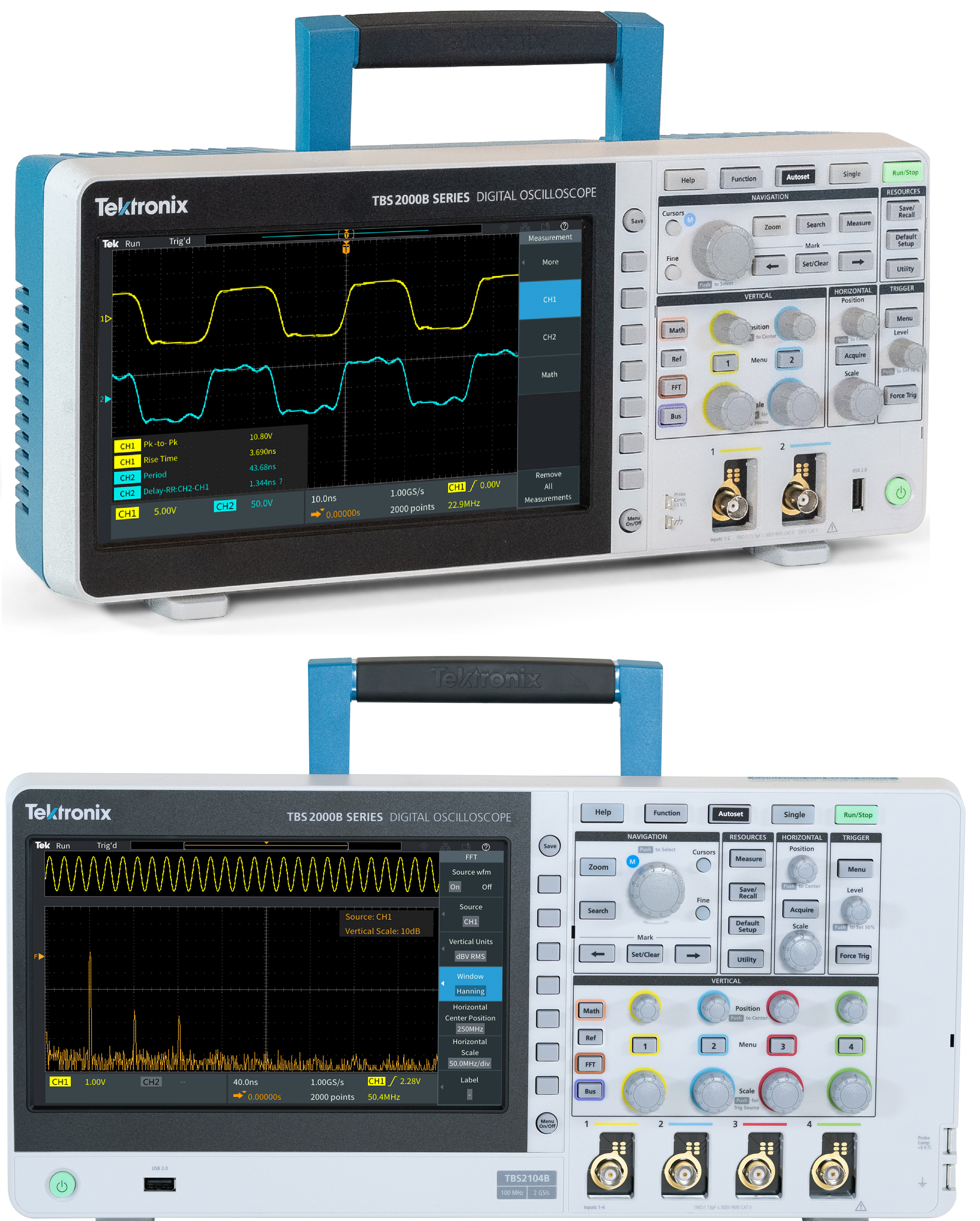 TBS2000Bシリーズ・オシロスコープは、9型WVGAディスプレイ、5Mポイントのレコード長、2GS/sのサンプル・レートを備えており、従来よりはるかに多くの信号を捕捉し、表示できるため、設計の効率的なデバッグや評価に最適です。新しい波形カーソル・リードアウトと32種類の自動測定に加え、優れたヘルプ機能も備えているため、簡単で信頼性に優れた信号解析が可能です。TekVPI®プローブ・インタフェースは従来からのBNC接続だけでなく、広範なアプリケーションに対応しており、最新のアクティブ・プローブや電流プローブも使用できます。