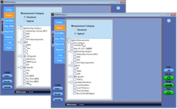 新しい選択パネルでは、PAM4信号の電気測定または光測定を選択できます。