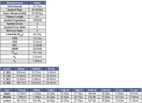 - OIF-CEIおよびIEEEベースのPAM4規格(OIF CEI-VSR-56G-PAM4、802.3bs、CDAUI-8など)に準拠した特性評価