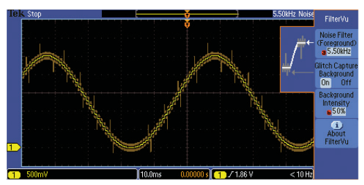 オシロスコープでノイズを抑える最も簡単な方法が帯域制限フィルタの使用であり、不要なノイズが固定のカットオフ周波数より上の場合は十分に機能します。しかし、高速のグリッチまで除去されてしまうことがあります。