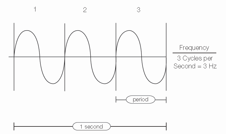 繰返し発生する信号には、「周波数」があります。周波数の単位は、 Hz(ヘルツ)で表され、1秒間に信号が何回繰返されるか(周期/ 秒)を示します。