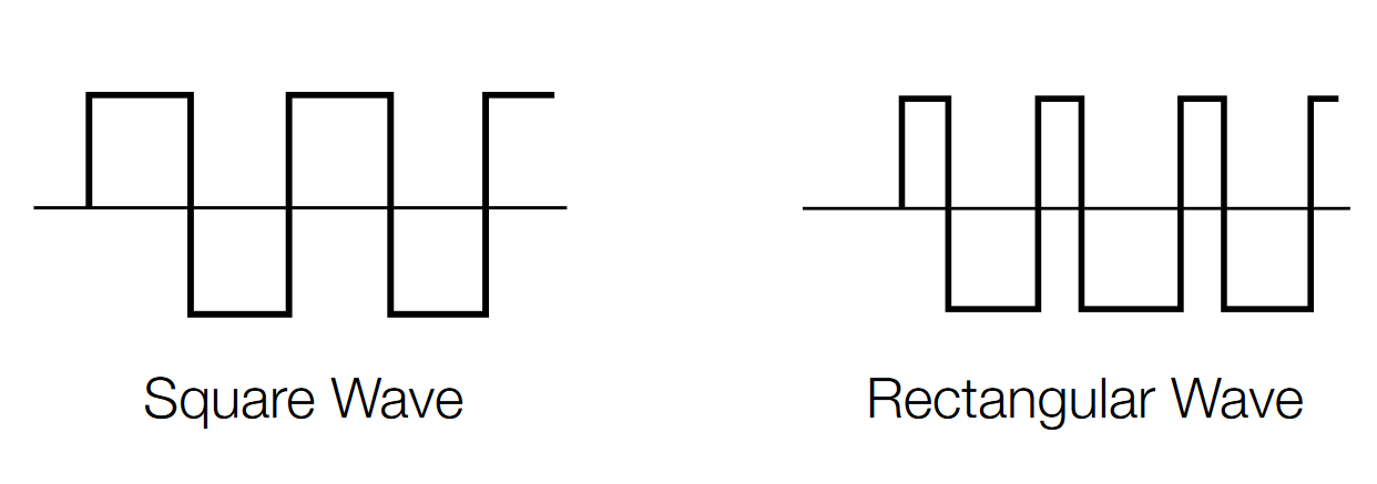A rectangular wave has switching characteristics similar to those of a square wave, except that its high and low time intervals are not of equal length, as described in the earlier "duty cycle" explanation. Figure 9 shows examples of square and rectangular waves.