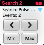 - 検索に使用できる場合、Min(最小)ボタンまたはMax(最大)ボタンをタップすると、波形レコードの検索イベントの最小値または最大値がディスプレイの中央に来るように波形を配置できます。