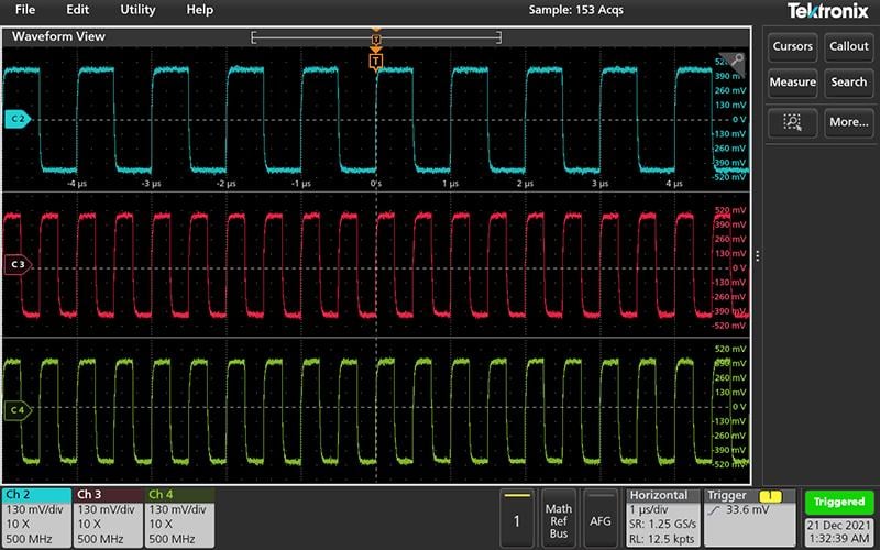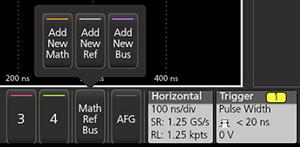 アナログ信号、デジタル信号、演算波形、リファレンス波形を検索できます。さまざまな波形への検索の追加や、同一波形への複数の検索の追加が可能です。