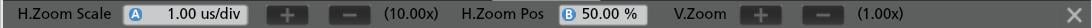 注:ナビゲーション・ボタンを使用できるのは、オシロスコープのアクイジション・モードがStop(停止)に設定されている時に限られます。これによりズーム・モードが開き、波形の「戻る」または「進む」のイベント・マークに波形が移動します。