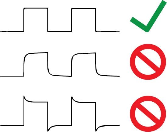 - オシロスコープには、テストするすべての回路と同じ接地が必要です。