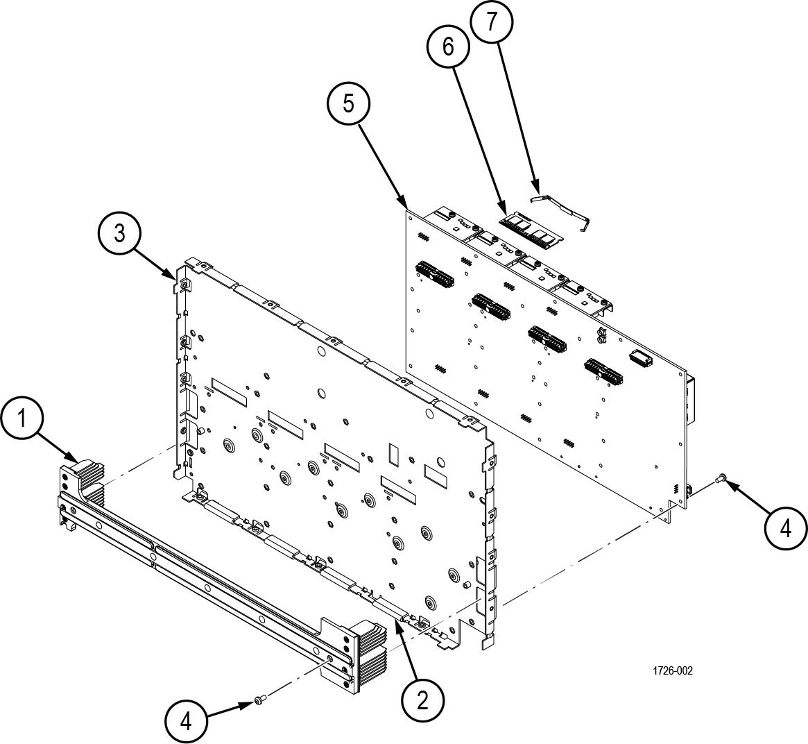 -7 | 407-5956-XX | - | BRACKET, SO-DIMM RETENTION, ASSEMBLY Return the instrument to Tektronix for service. |