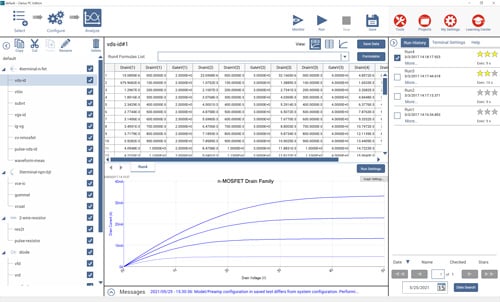 The Clarius+ software suite makes it easy to get characterization insights on your materials and devices. It runs natively on the 4200A-SCS to plan, configure, and analyze results of your tests. Clarius can also be installed on any Windows 10 PC to plan and configure tests before running them in your lab, or analyze data after it's gathered.