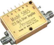 The Model PSPL5865 Driver Amplifier is intended for use driving Lithium Niobate modulators or as a linear amplifier. This device includes internal temperature compensation for excellent output stability over temperature, and exhibits both high output and low power dissipation. It also incorporates internal sequencing circuitry, making it insensitive to power supply application sequence.